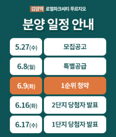 인천시 서구 백석동에 위치한 '검암역로열파크시티푸르지오'가 내일 6월 9일부터 청약접수가 진행된다.